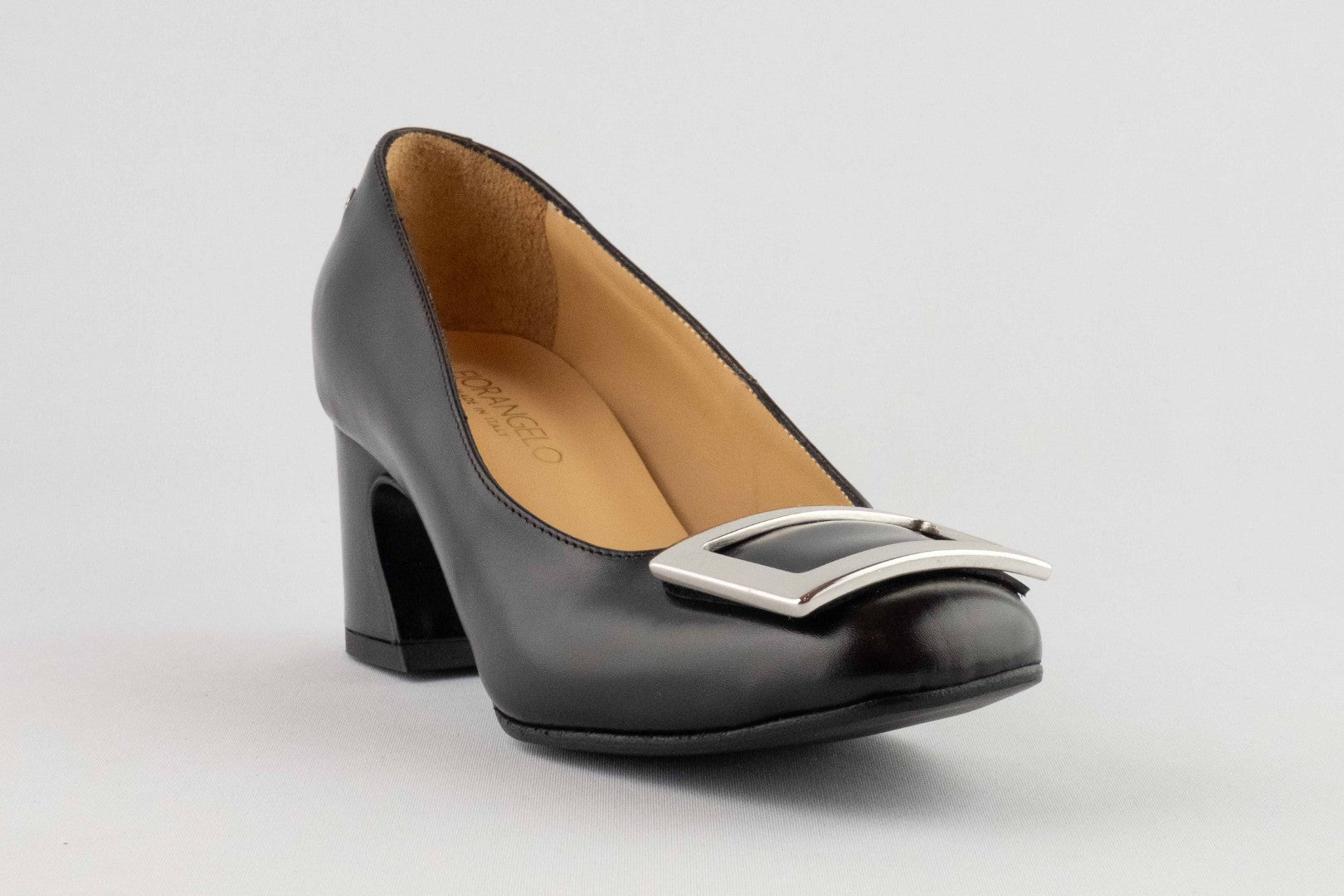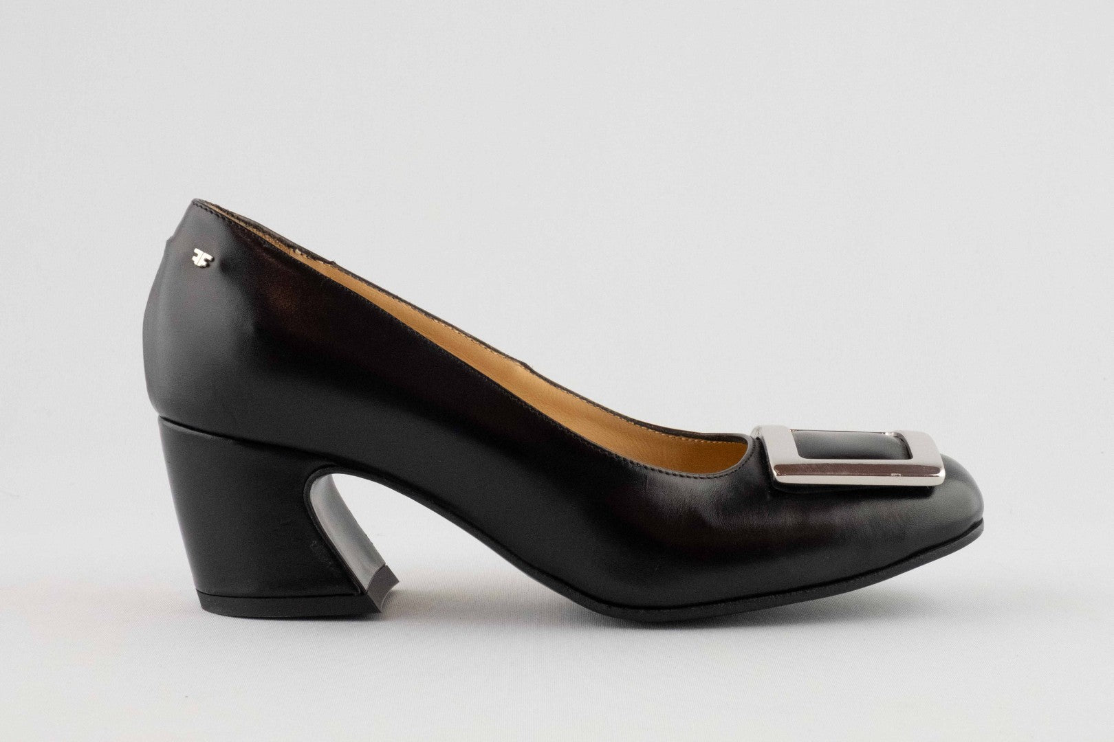 Crafted in Italy from premium blue nappa leather with silver accent perfectly combine elegance and comfort. They sit on a block midi heel and reveal a rounded toe. Wear them with a pencil skirt and a tailored shirt.