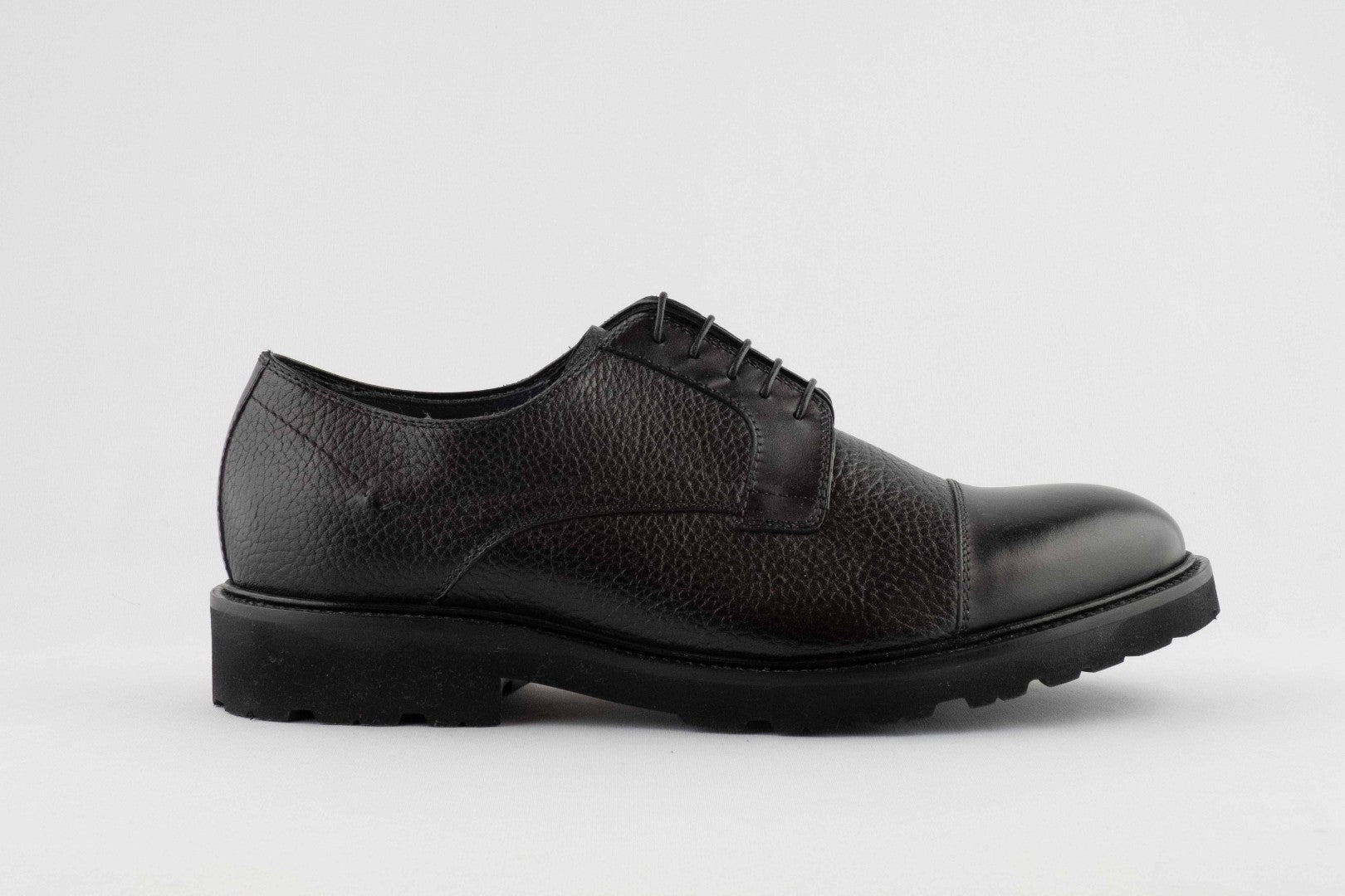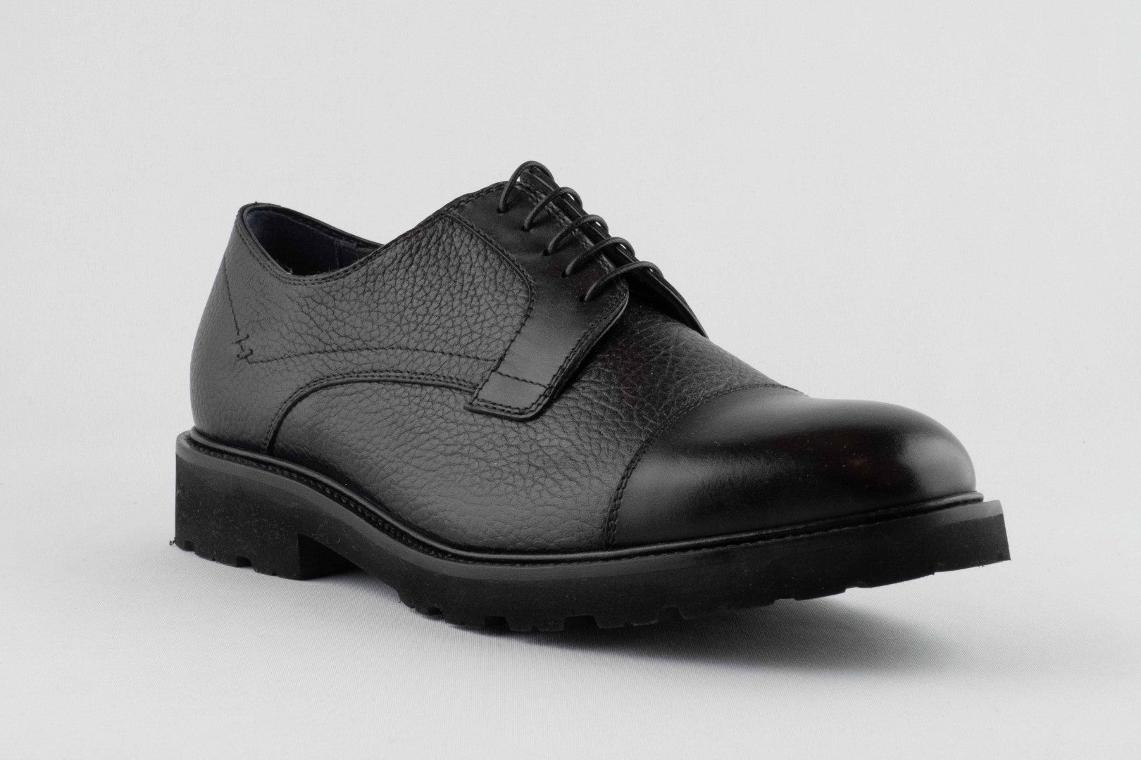 Lorenzi derby in black leather with extra welt insole included